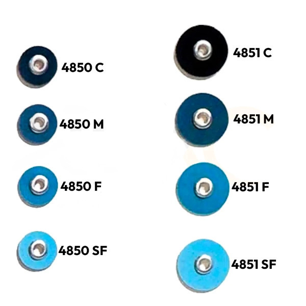 • Estos discos tienen un perfil extra delgado para un terminado y pulido dental preciso en áreas donde el acceso es un problema.