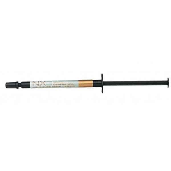 NX3 Nexus™ Tercera Generación es un cemento dental adhesivo de resina universal indicado para todas las aplicaciones indirectas, con una química innovadora para unos resultados estéticos incomparables y una gran adherencia y versatilidad. Las opciones del sistema de dispensación incluyen una jeringa de automezcla para indicaciones de polimerización dual y un cemento fotopolimerizable para los casos en los que es necesario un tiempo ilimitado de trabajo.
