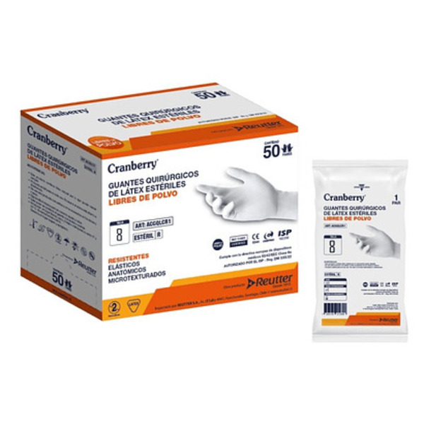 CRANBERRY Guantes Quirurgico Esteril Caja 50 Pares Talla 8