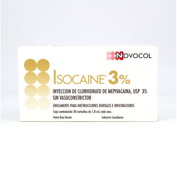Novocol Isocaine al 3% es una solución anestésica local de acción rápida, ideal para procedimientos odontológicos de corta y mediana duración. Al no contener vasoconstrictor, es una opción segura para pacientes con condiciones médicas especiales como hipertensión, arritmias, enfermedades cardiovasculares o sensibilidad a la adrenalina.